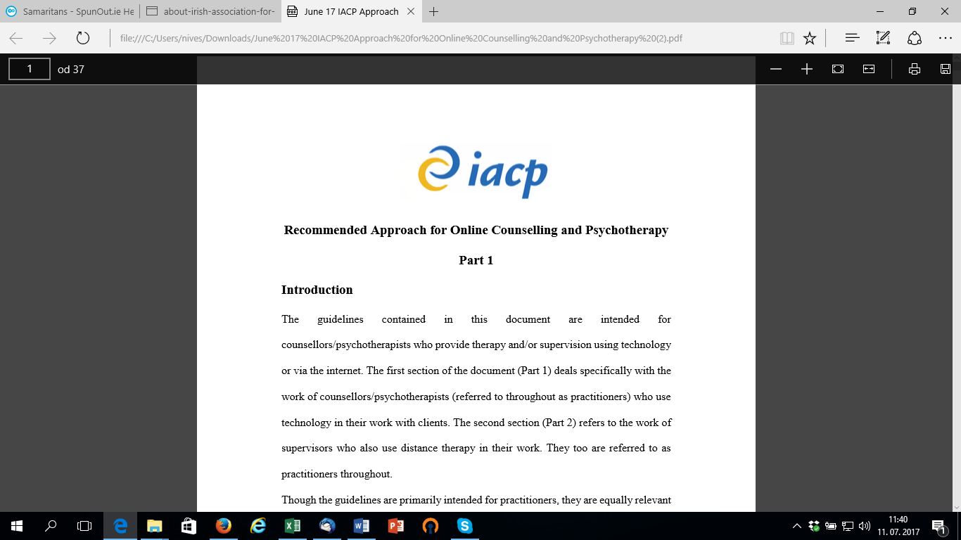 Guidelines: Recommended approach for online counselling and psychotherapy